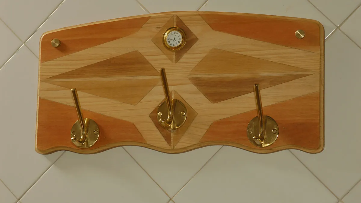 A continuación, presentamos el perchero en la pared y lo fijamos con unos tacos y unos tirafondos que irán cubiertos con unos embellecedores metálicos.