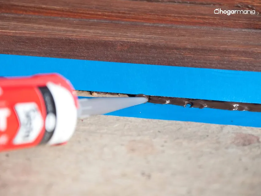 Para sellar la junta, emplea una silicona neutra de uso universal, de un tono marrón, idónea para aplicar en ventanas de madera. Encaja el cartucho con su cánula en una pistola aplicadora y procede a rellenar la zona afectada.