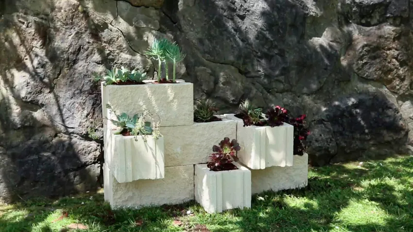 Os proponemos hacer unos decorativos maceteros para el exterior utilizando bloques de hormigón. Vemos paso a paso cómo hacerlos.