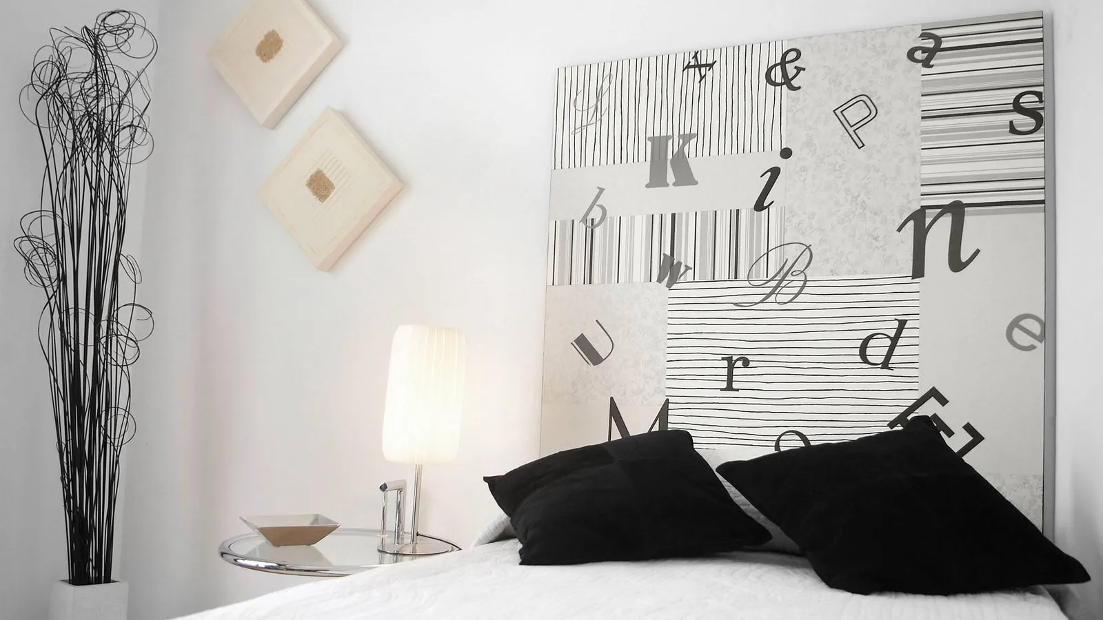 Para terminar el trabajo, daremos un último toque decorativo poniendo unas letras autoadhesivas, de forma aleatoria. Y de esta manera, ya habremos terminado de decorar con papel vinílico un cabezal.