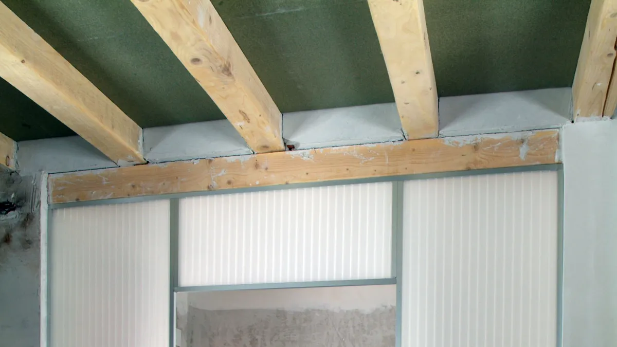 Presentamos y sujetamos provisionalmente el perfil de aluminio en la viga del techo con cinta adhesiva.