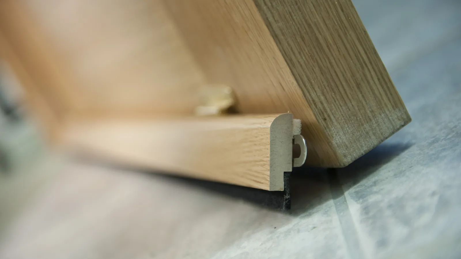 Presentamos el burlete en la parte inferior de la puerta para asegurarnos de que su longitud es de la misma anchura que la pieza de madera.