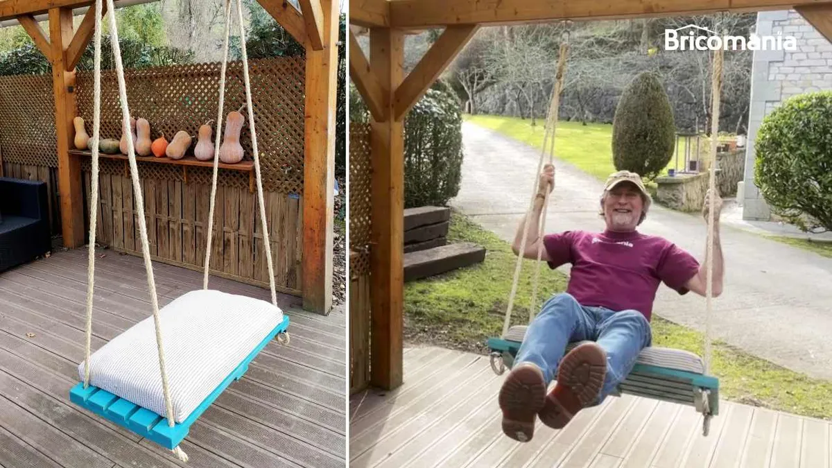 Solo quedará colocar unos cojines y colgar la mecedora con unas cadenas, unos mosquetones y unos cáncamos. ¿Qué os parece?