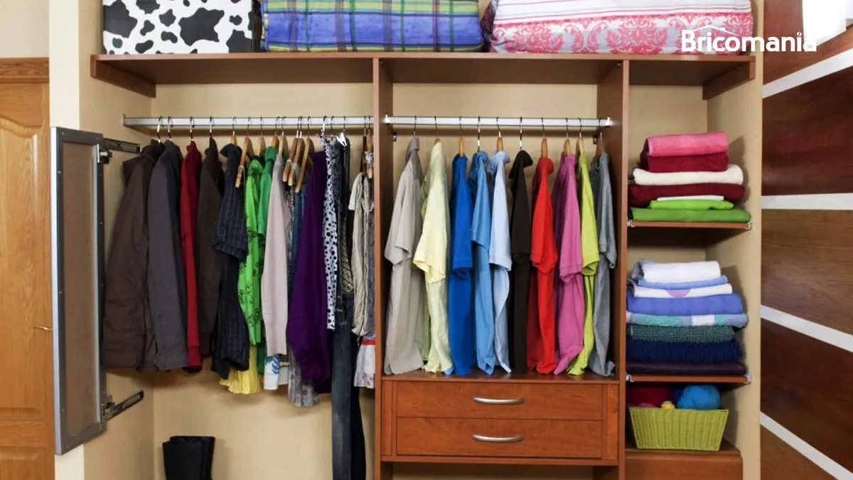 En el interior del armario no pueden faltar baldas o estantes para organizar y apilar la ropa doblada. Además, puedes hacerlos tú mismo a medida y adaptarlos a las prendas que quieres guardar o a los huecos disponibles en el armario. Lo ideal es tener varias baldas y agrupar los diferentes tipos de ropa en cada una. Por ejemplo, las camisetas en una balda, los jerséis en otra, etc.