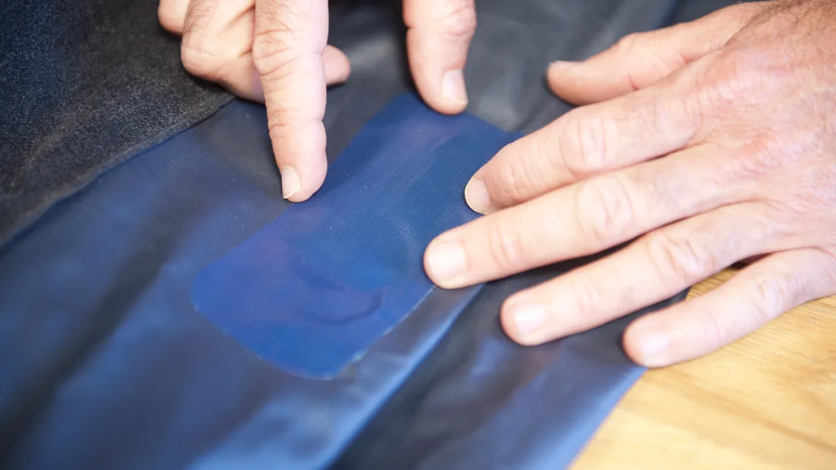 Una vez que hayamos deshinchado la colchoneta, aplicamos un pegamento universal extra-fuerte, flexible y resistente a golpes y vibraciones en el parche.