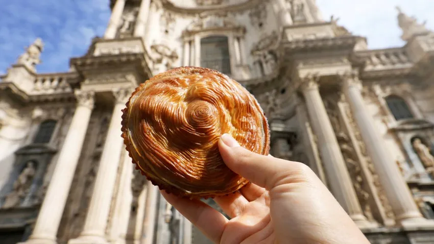 Un hojaldre relleno de ternera, chorizo, huevo duro y especias. Se remonta al siglo XVII, cuando el gremio de pasteleros de Murcia recibió el privilegio de su elaboración. Desde entonces, el pastel de carne ha mantenido su receta casi intacta y es considerado un símbolo de la gastronomía murciana.
