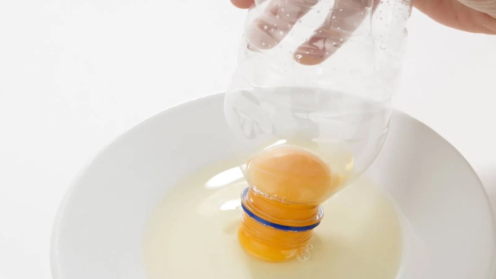 Este truco funciona tan bien que parece magia, pero tiene una explicación muy sencilla. Solo necesitas una botella de plástico vacía y flexible, como las de agua o refresco. Su secreto está en el vacío que se crea al apretarla: esa pequeña succión es suficiente para atrapar la yema sin romperla.