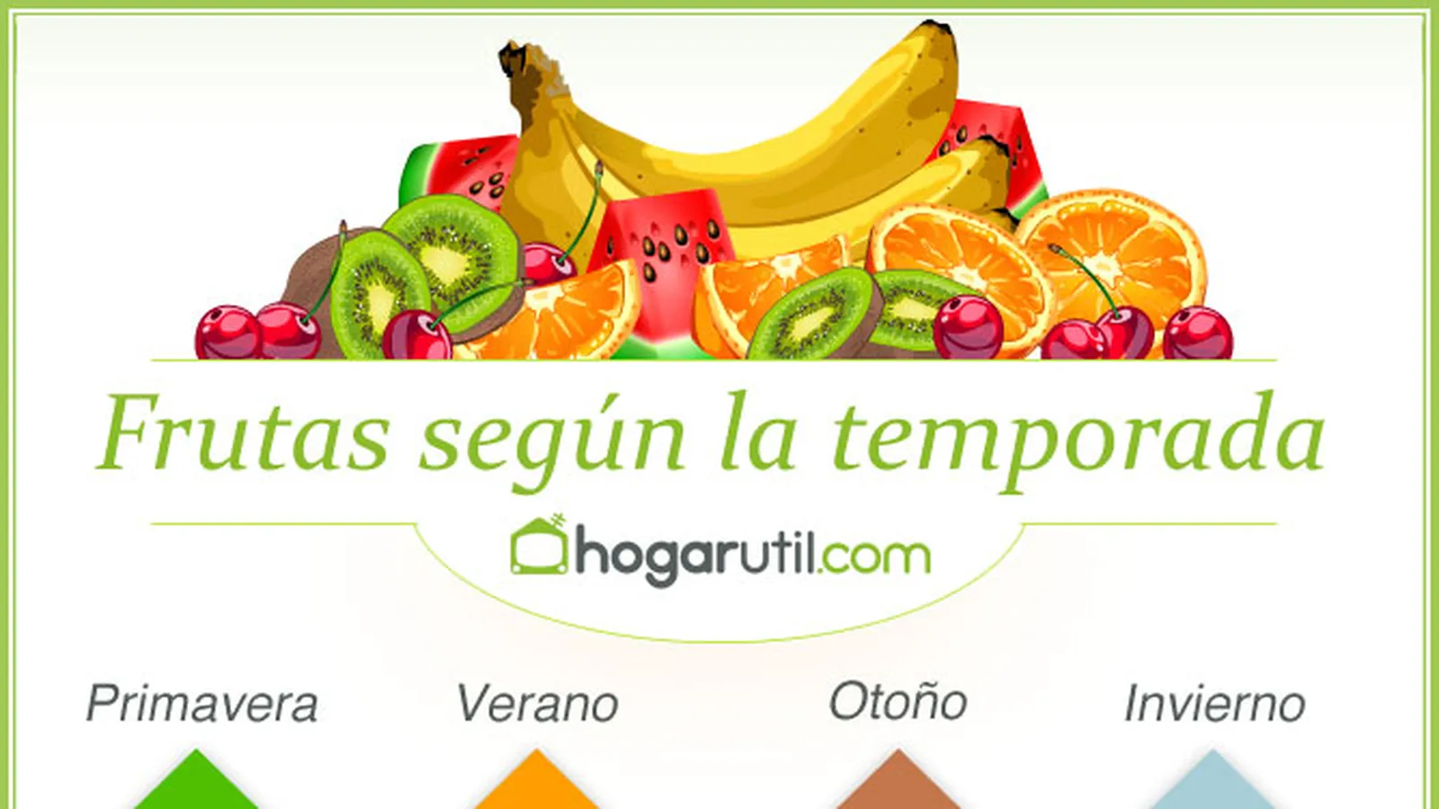 En esta infografía hemos dividido las distintas frutas según su temporada, frutas de primavera, verano, otoño e invierno.