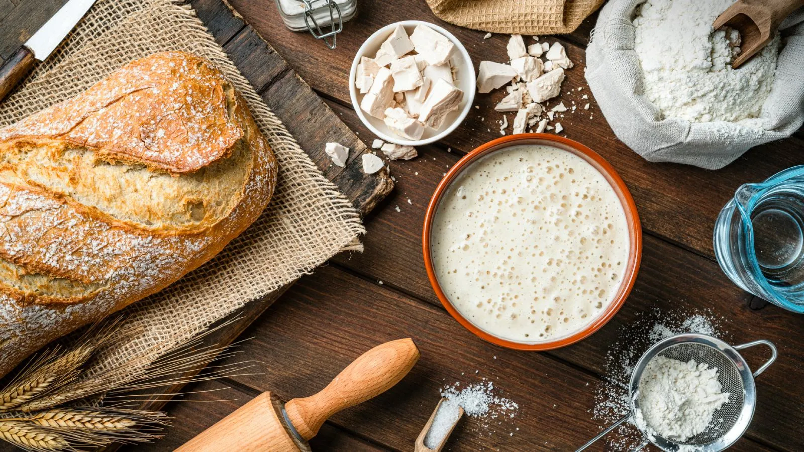 El pan es uno de los ejemplos más claros de fermentación en la vida diaria. Al mezclar harina, agua y levadura, las enzimas de la levadura descomponen los almidones del cereal en azúcares simples y dióxido de carbono. La levadura concreta que realiza este proceso es la famosísima Saccharomyces cerevisiae.