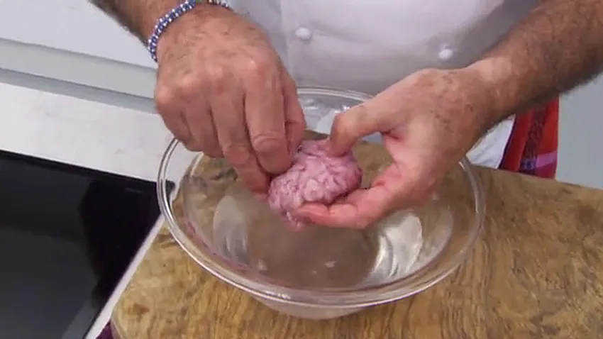 Karlos Arguiñano explica cómo limpiar y blanquear sesos, una práctica técnica de cocina.