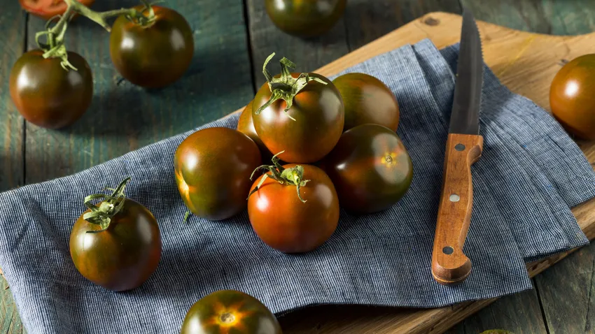 El kumato o tomate negro es un tipo de tomate de cultivo de piel oscura y brillante que destaca por su sabor más dulce y su carne crujiente.