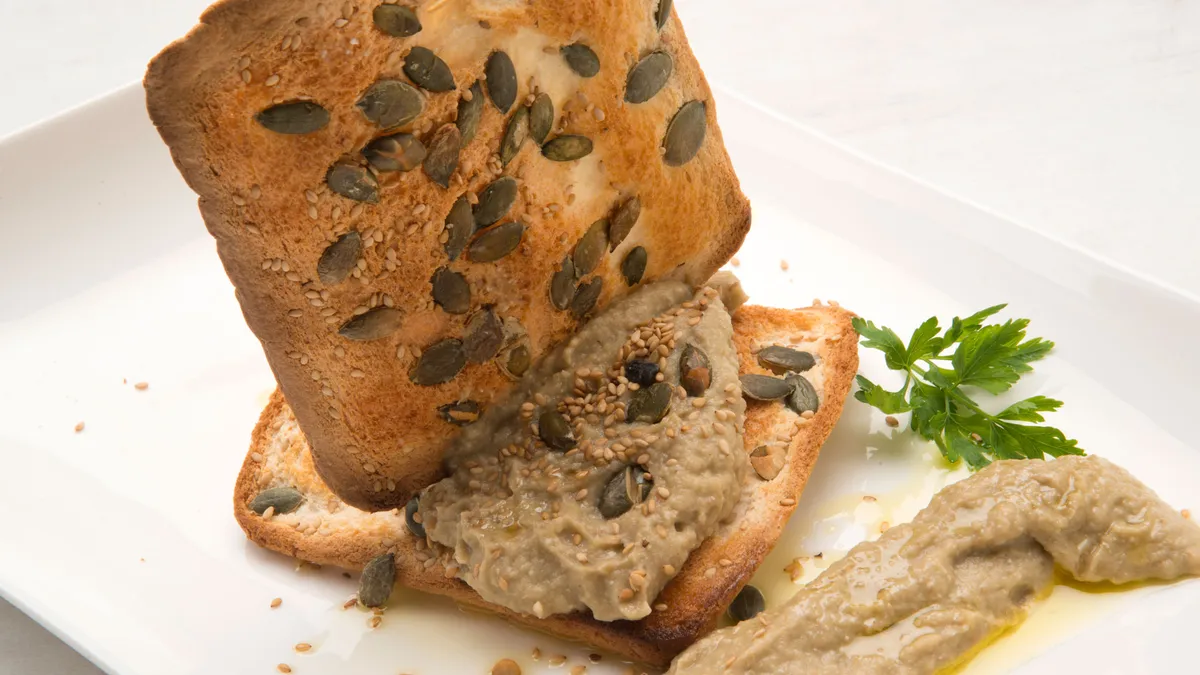 Hummus de berenjena con pan de semillas