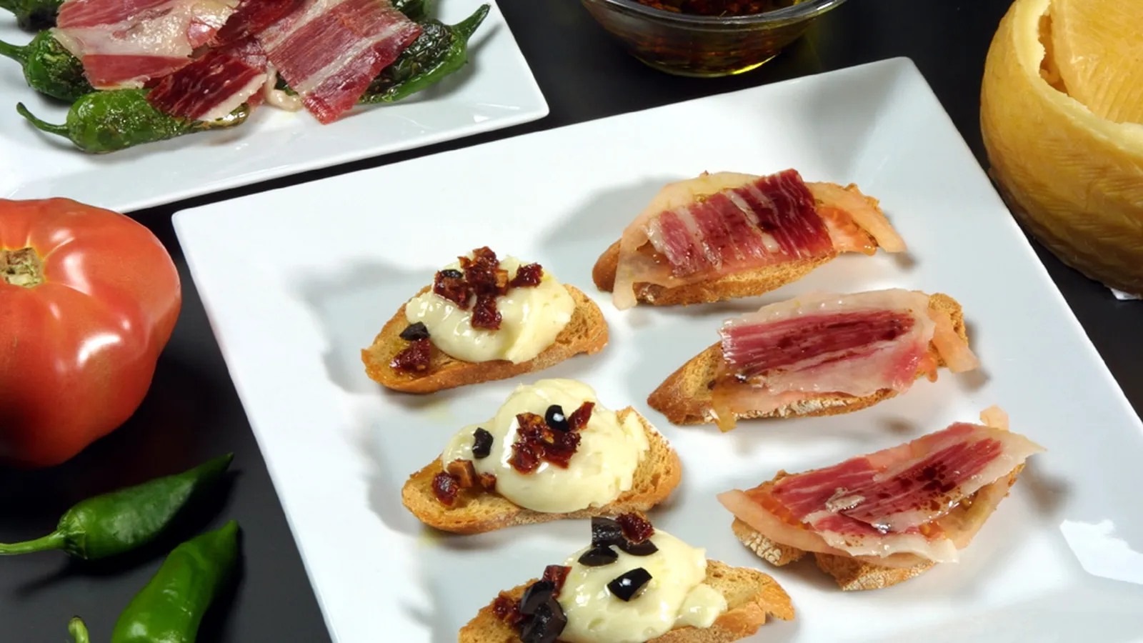 Karlos Arguiñano elabora varias tapas de jamón y queso con pimientos verdes pequeños y aceitunas. Una receta que triunfará para el aperitivo.