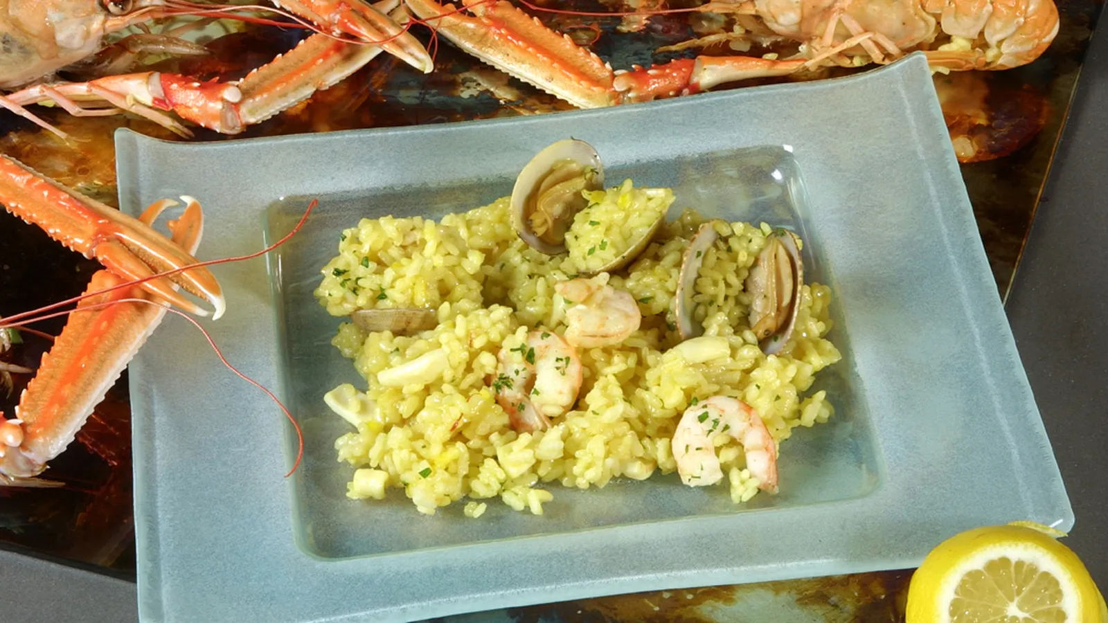 Receta de arroz caldoso con marisco elaborada por Karlos Arguiñano, un plato delicioso y sencillo realizado con caldo de pescado, calamares, almejas, cigalas y gambas.