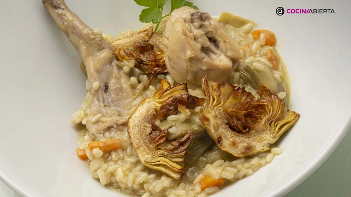 Risotto de carne de conejo con alcachofas por Karlos Arguiñano