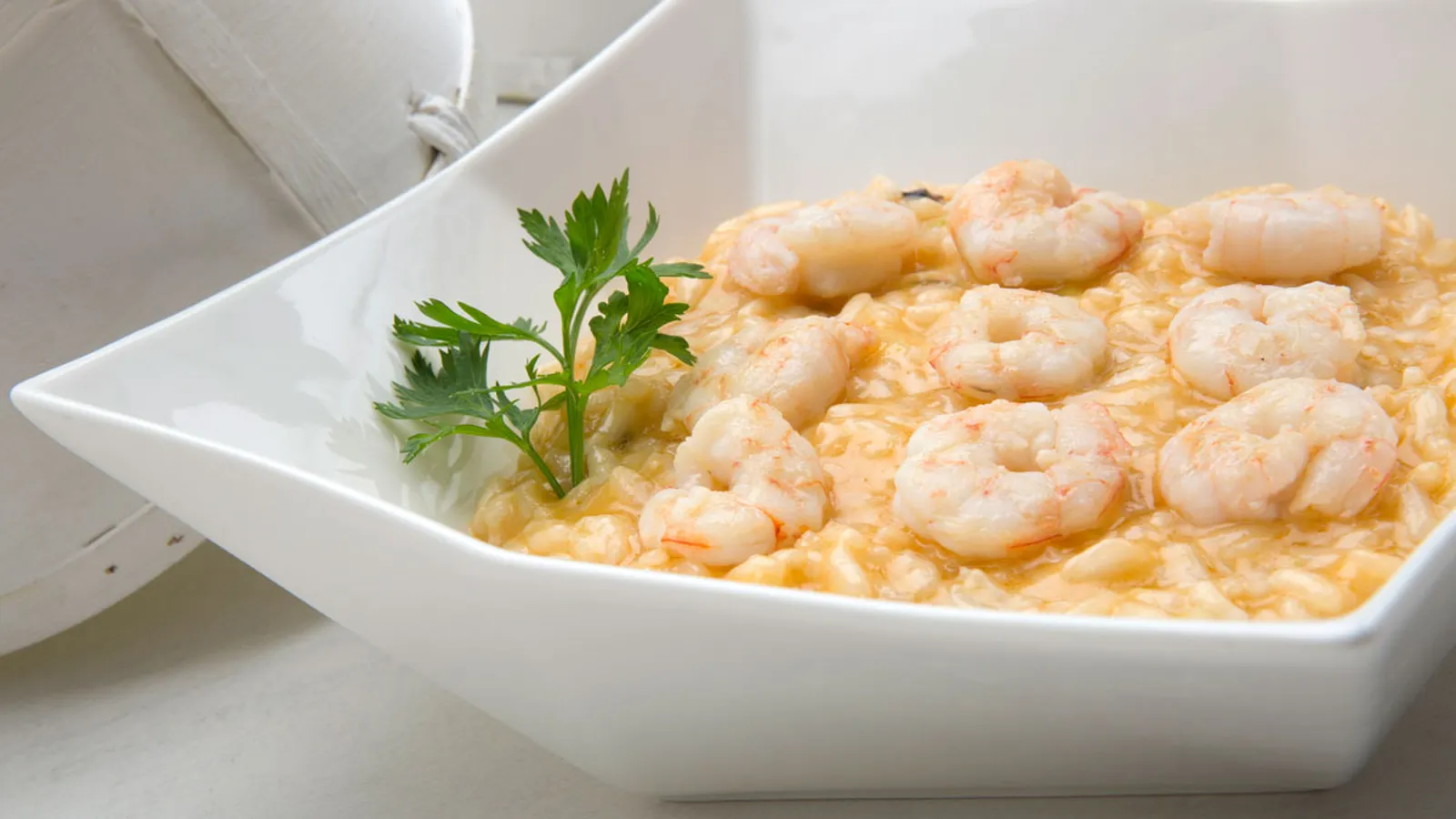 Receta de Karlos Arguiñano de risotto de gambas a la plancha al aroma de tomate, un plato nutritivo y saludable con sabor a mar.