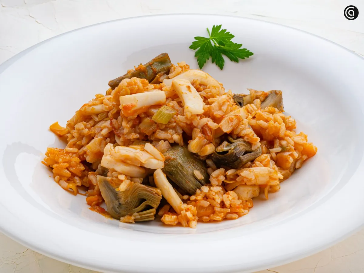 Para reforzar el sabor, el sofrito se hace con ajos frescos, puerro y alcachofas. Una alternativa a la clásica paella valenciana para compartir en casa cualquier día de la semana.