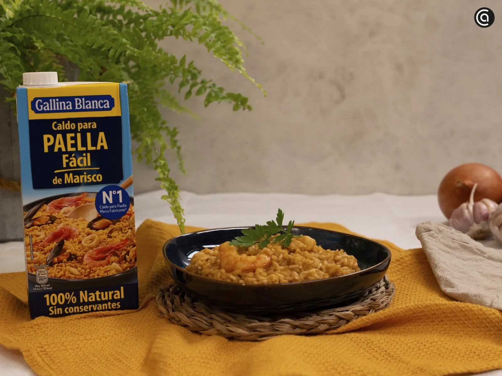 Usar un buen caldo de marisco es esencial para conseguir un resultado equilibrado y lleno de matices, como el Caldo para Paella Fácil de Marisco 100% Natural Gallina Blanca, con marisco y el toque de sofrito que garantiza todo el sabor casero.