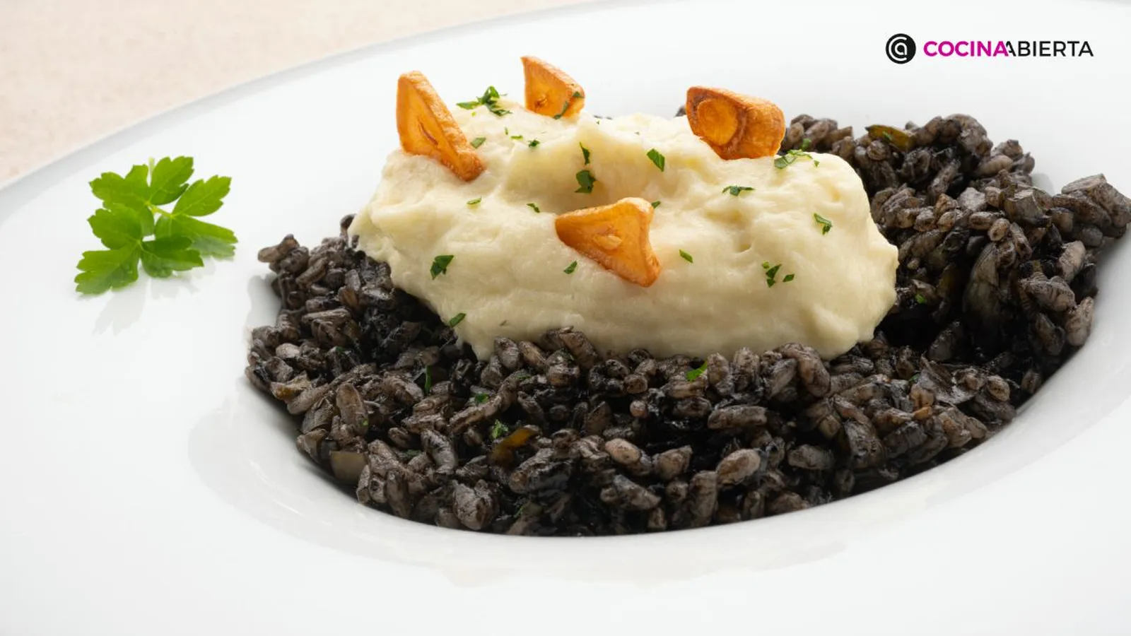 Su característico color oscuro se debe a la tinta de calamar. 'Es un plato para triunfar', afirma Karlos Arguiñano. Para acompañarlo, nada mejor que un bacalao mantecado, una preparación similar a la brandada de bacalao.