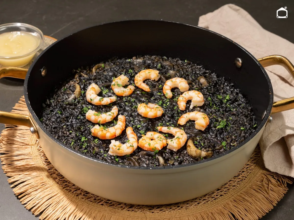 El arroz negro con gambas es de esos platos que merecen el tiempo en la cocina. Aunque suele ser una receta de domingo, también puedes prepararlo y servirlo cualquier día de la semana. Joseba Arguiñano enseña a hacerlo paso a paso y a conseguir que el arroz quede en su punto.