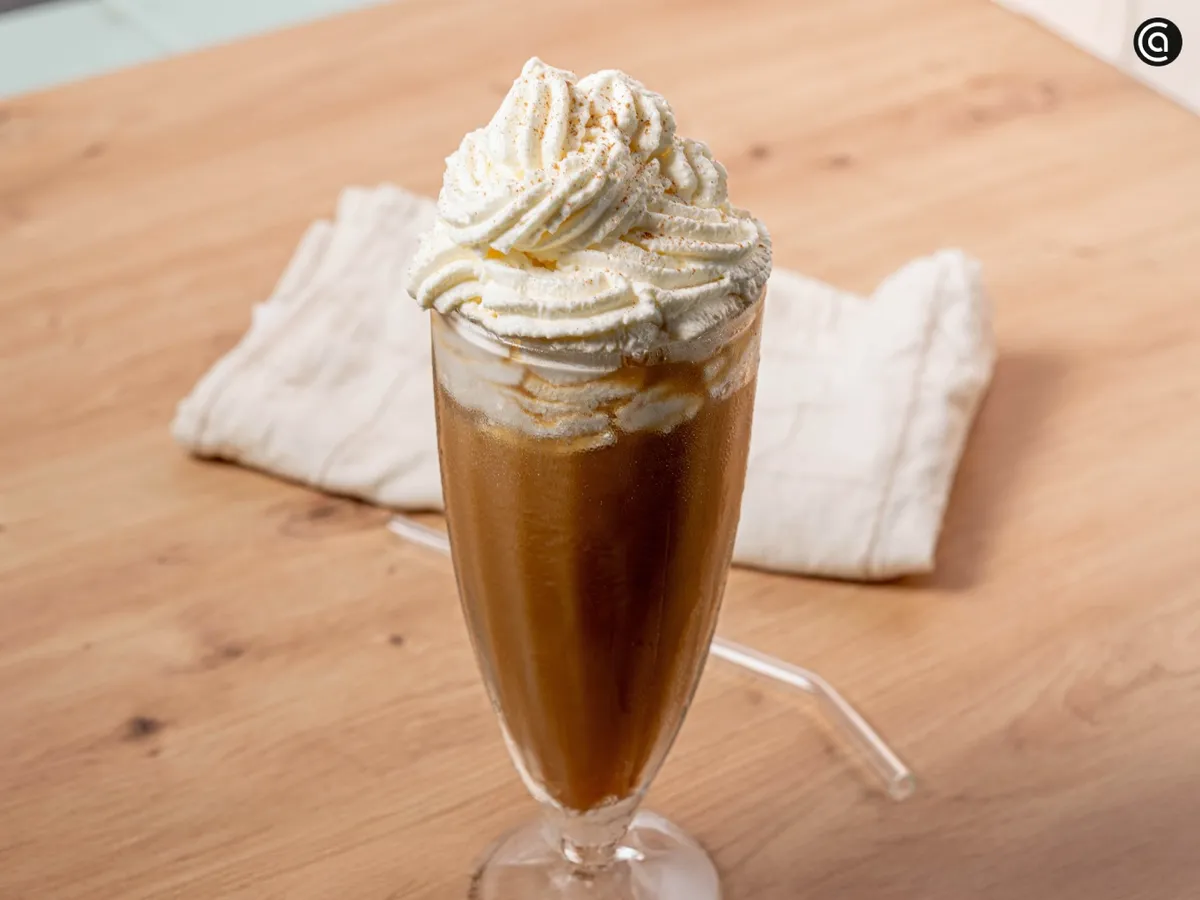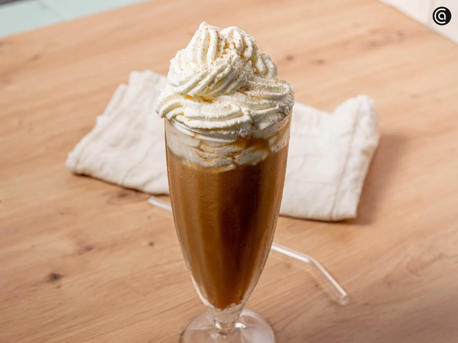 Vierte el frappé en un vaso alto, añade la nata montada por encima