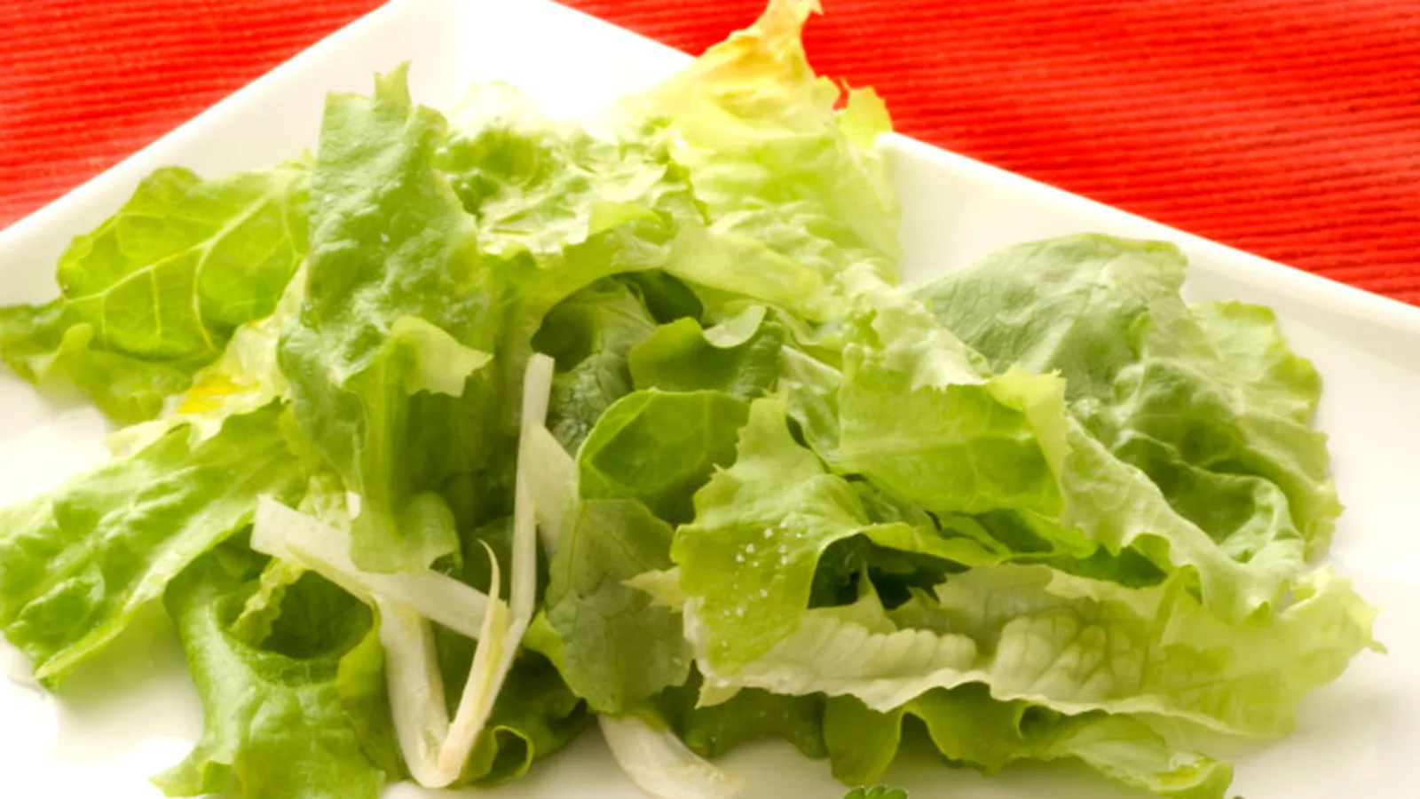 Limpia la lechuga, trocea y ponla en un bol con la cebolleta cortada en juliana. Aliña con sal, vinagre y aceite y mezcla.