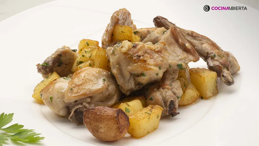 Conejo al ajillo con patatas