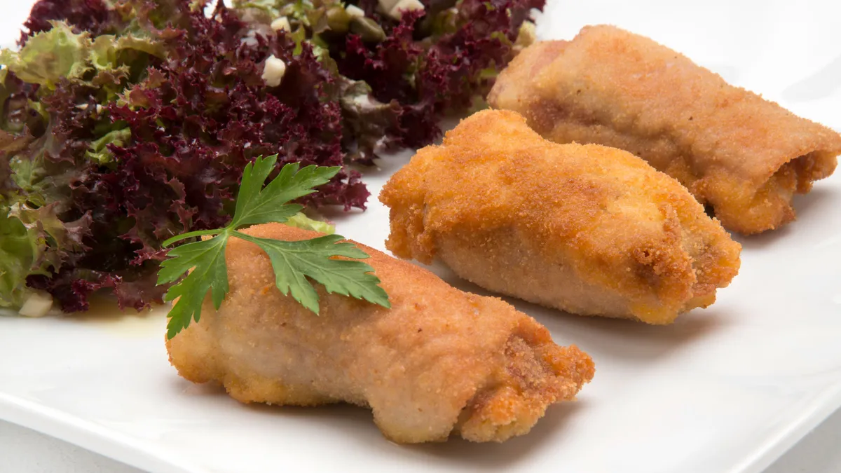 El flamenquín es un plato tradicional de Córdoba (Andalucía) y consiste en un rollo de lomo de cerdo con jamón empanado y frito. Karlos Arguiñano explica la receta de flamenquines.