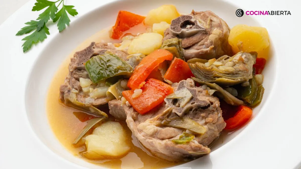 La preparación es sencilla, aunque requiere unos 35 minutos de cocción para lograr un guiso sabroso y con carácter. El plato incluye, además, pimientos y alcachofas, que aportan un extra de sabor y textura.