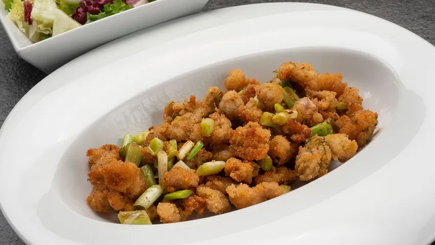 Mollejas (lecheritas) con ajos frescos y ensalada