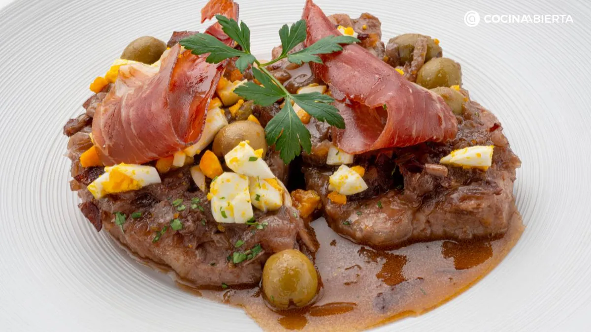 La base de esta receta consiste en enharinar los lomos de cerdo, para dorarlos y cocinarlos en una salsa especial. El fondo que dará sabor a la carne se elabora con un sofrito de ajo y cebolla, daditos de jamón, salsa de tomate, vino tinto y caldo de carne al que se añade aceitunas o alcaparras. Y para completar el plato, se presenta decorado con huevo cocido y tiras de jamón. ¡Sigue la receta fácil de Karlos Arguiñano!