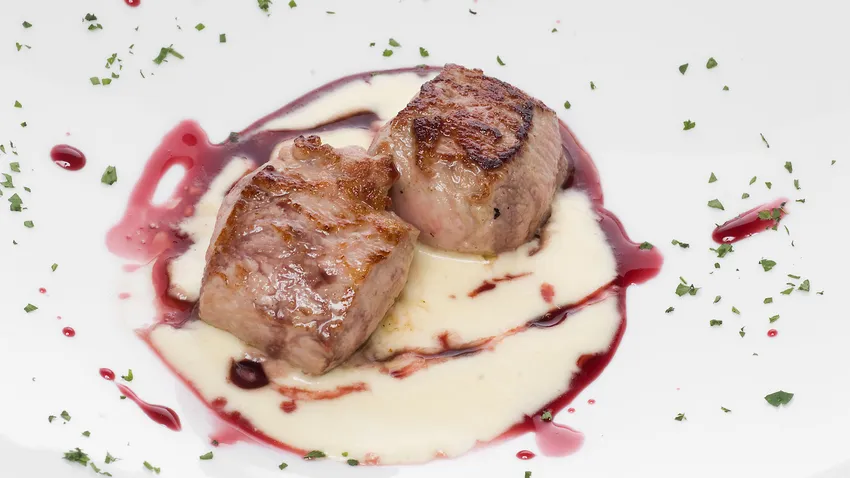 Elaboración de la receta de lomo de cordero con crema de ajo y almendra