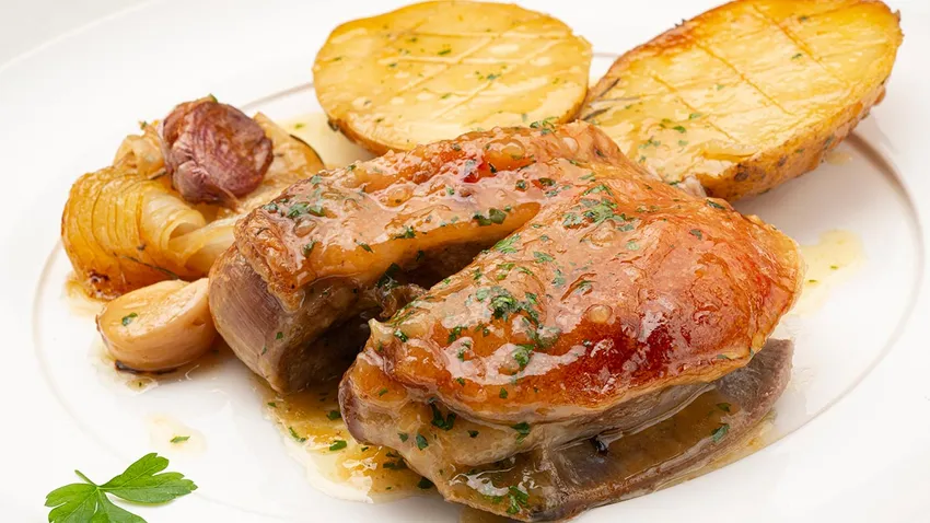 Espectacular receta la que prepara Karlos Arguiñano: Paletilla de ternasco con patatas y cebolla, un jugoso plato de carne muy sugerente para degustar en Navidad u otras celebraciones.