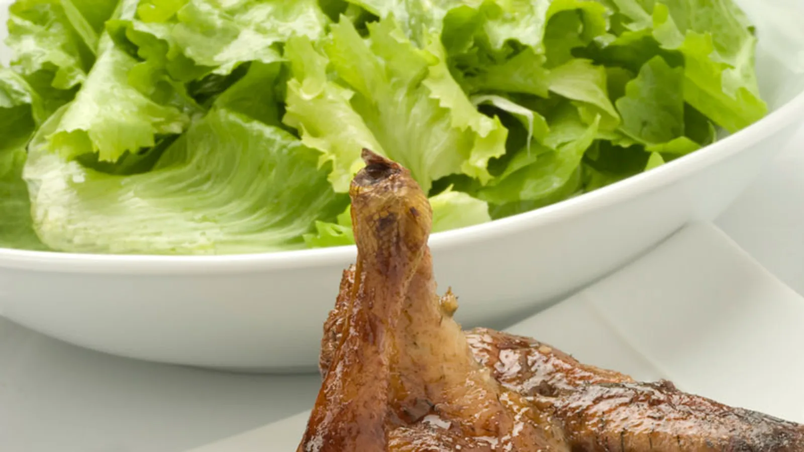 Limpia las hojas de lechuga y alíñalas con sal, aceite y vinagre. Sirve el pato en un plato y acompaña con las uvas salteadas y un poco de su jugo. Decora con una hojita de perejil y sirve en otro plato las hojas de lechuga.