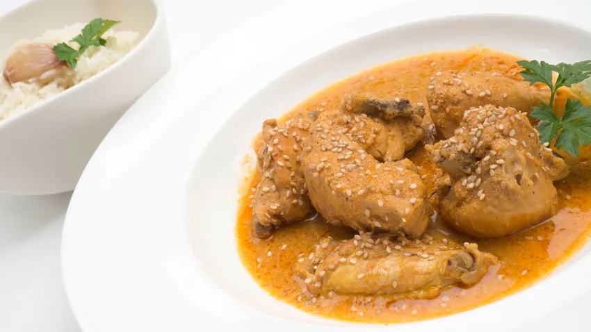 Karlos Arguiñano propone un plato de pollo al curry y jengibre cocinado a fuego suave en su jugo. Para acompañar, arroz blanco.