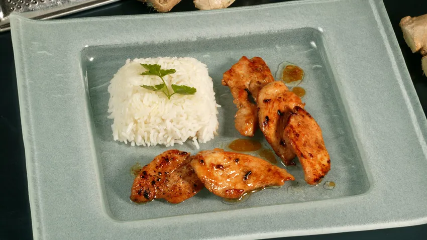 Receta de pollo al jengibre, un toque oriental dado por Karlos Arguiñano al prepara el pollo con jengibre, salsa de soja, y arroz basmati, sencillo y delicioso.