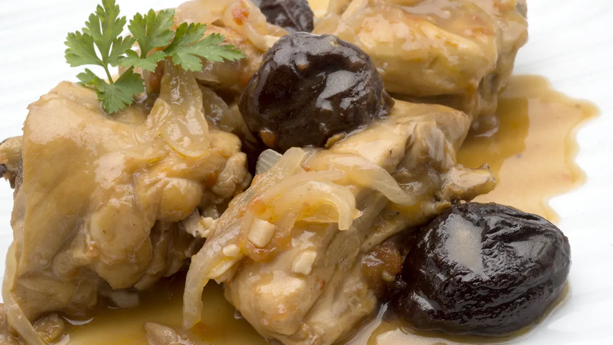 Pollo rustido con ciruelas