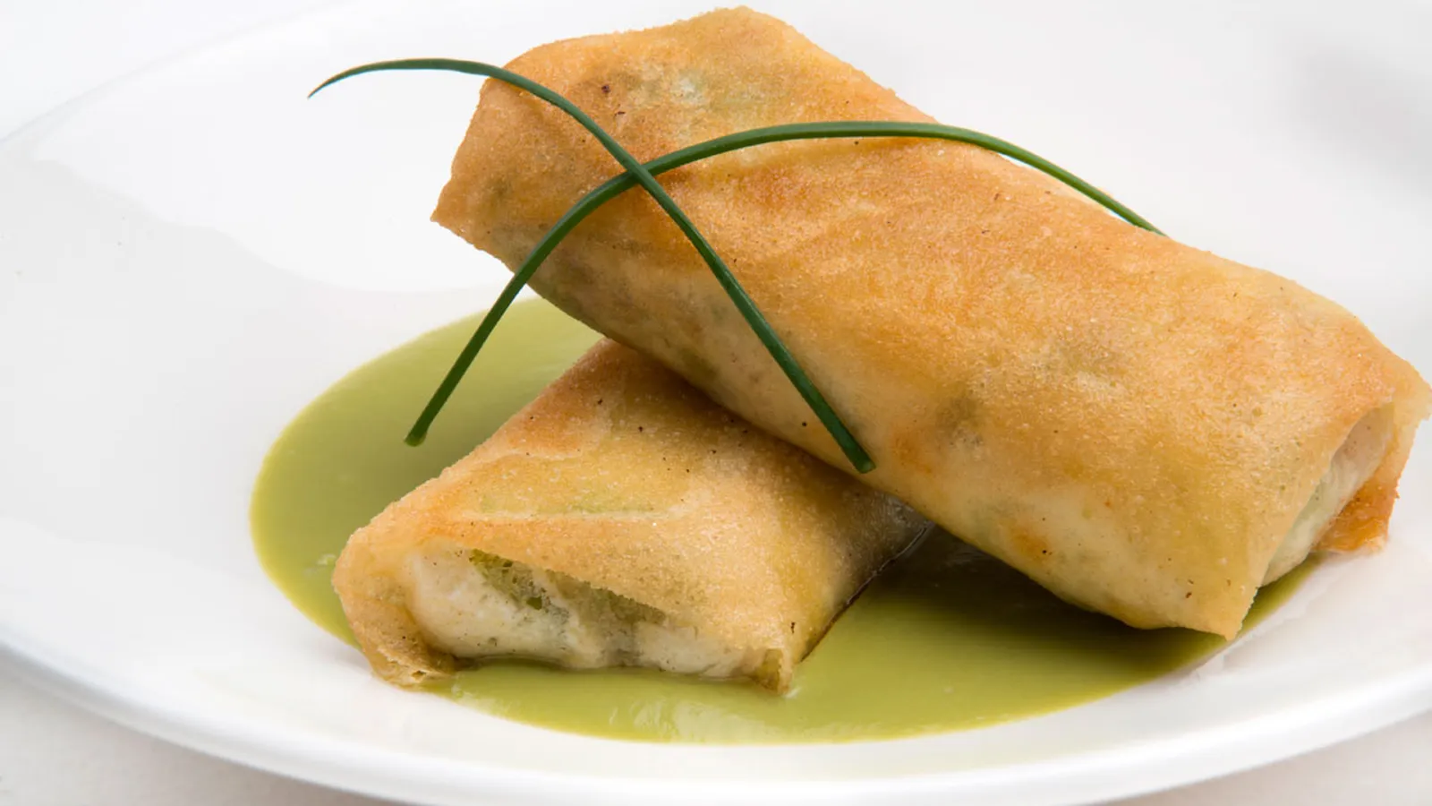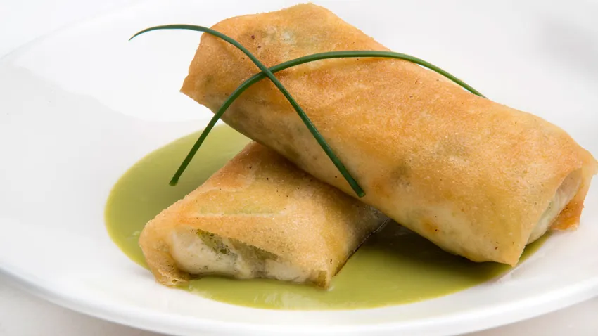 Karlos Arguiñano prepara una receta de rollitos de pasta brick rellenos de jamón, lechuga y piña y acompañados de salsa de guisantes.