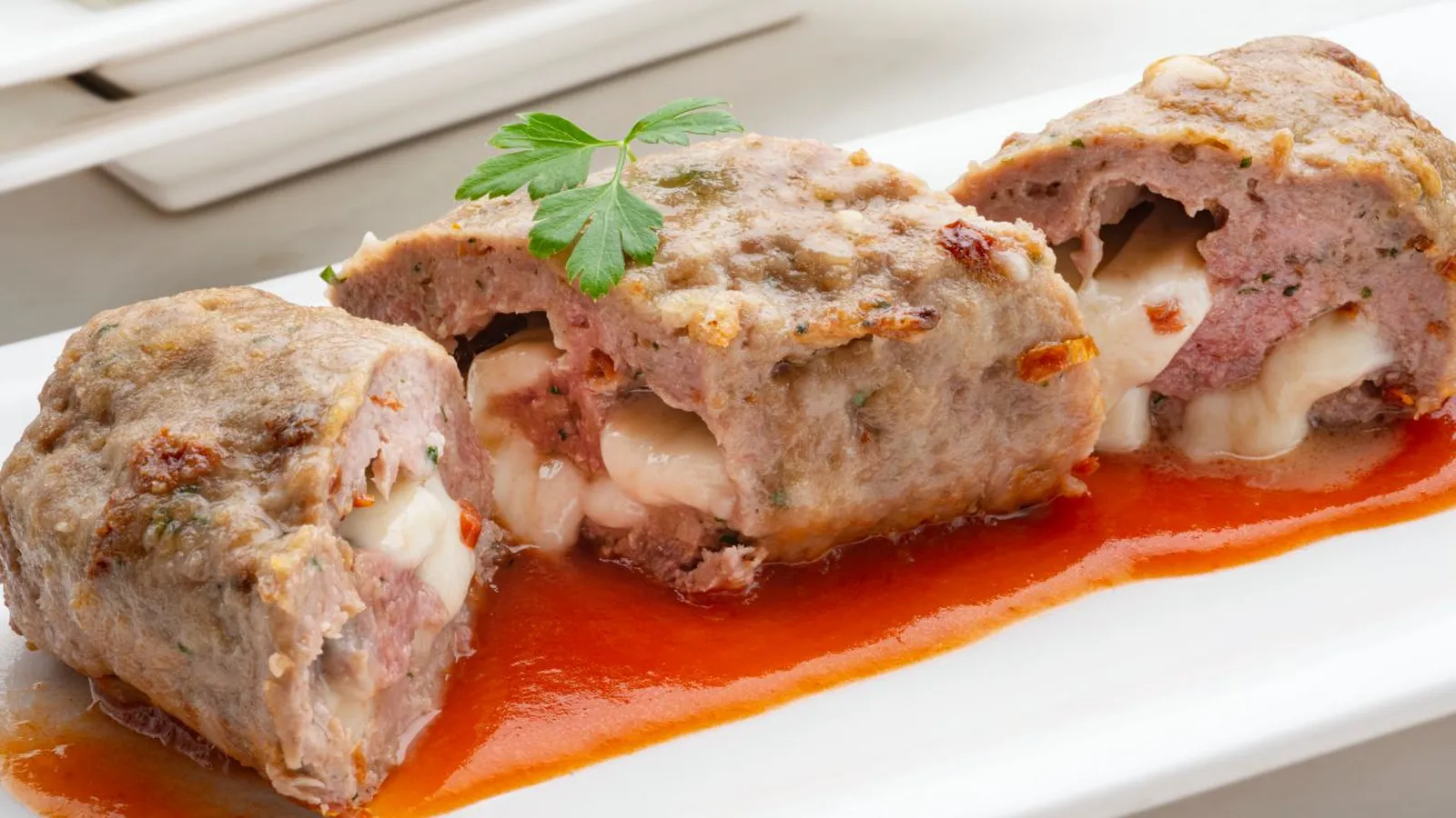 4. Sirve el rollo de carne picada sobre salsa de tomate