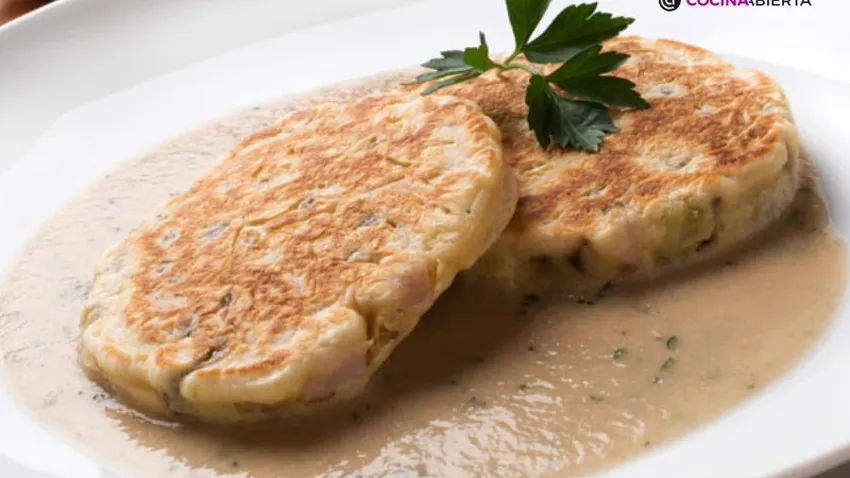 Receta de Karlos Arguiñano de tortitas de pavo, champiñones, ajos frescos, harina, levadura, leche y huevos. Para acompañar, una rica salsa de champiñones y vino blanco.