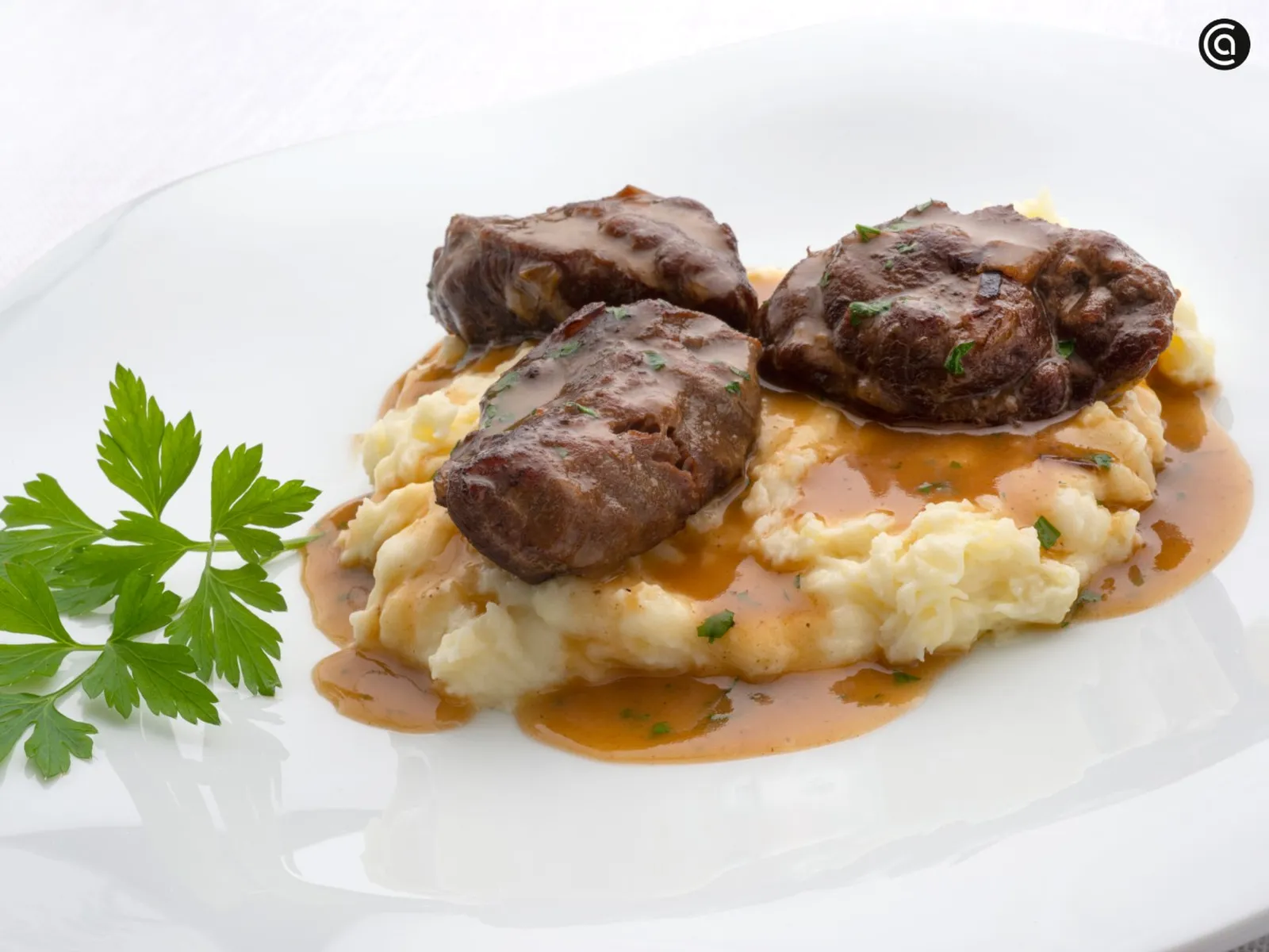 Carrilleras de cerdo asadas con puré de patatas, por Karlos Arguiñano