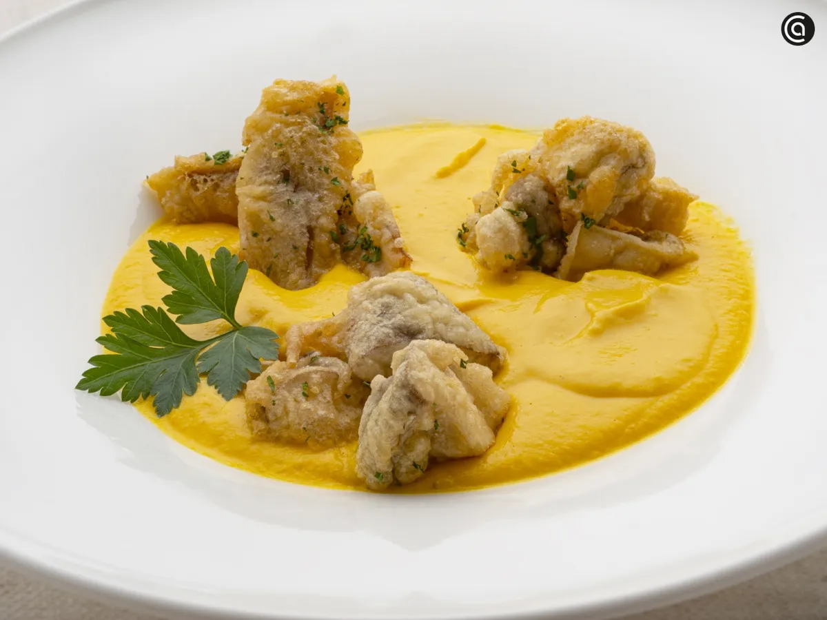 Una crema suave con guarnición de setas en tempura crujiente, una receta fácil que se prepara en pocos pasos