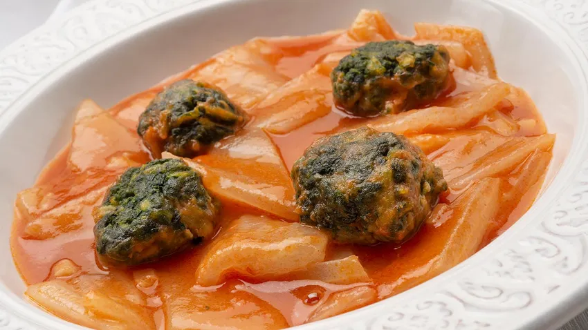 Pica las hojas finamente, sazona y ponlas en un bol. Agrega la yema del huevo y mezcla bien. Forma bolitas, pásalas por harina y fríelas en una sartén con aceite. Escúrrelas sobre un plato cubierto con papel absorbente de cocina y resérvalas.