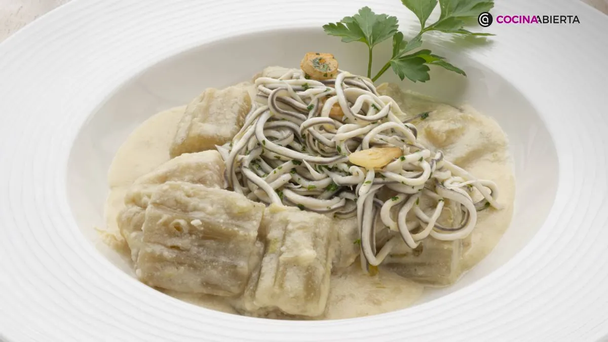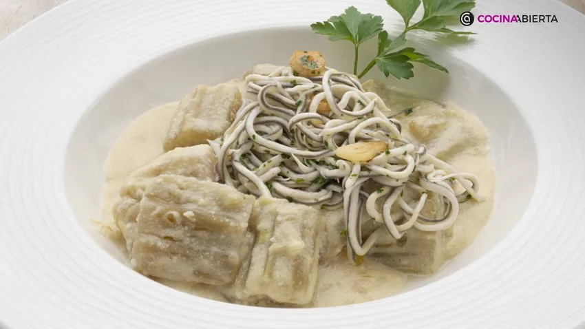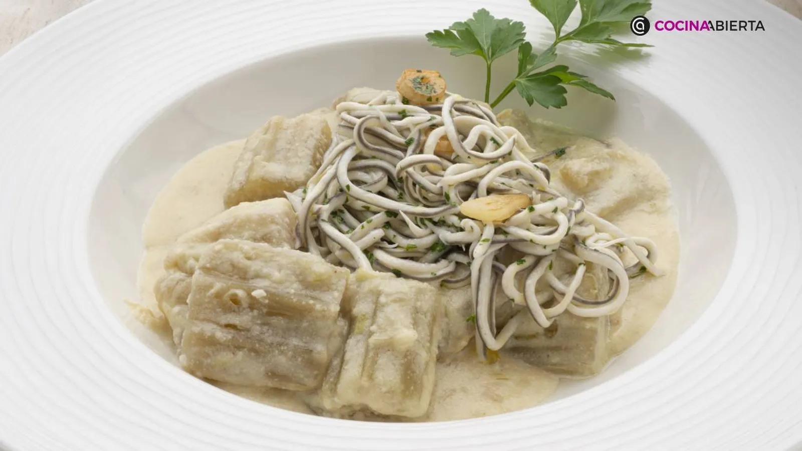 Cardo en salsa de almendras con gulas por Karlos Arguiñano