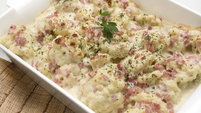 Karlos Arguiñano prepara un plato de coliflor al vapor con bechamel de jamón gratinada en el horno.