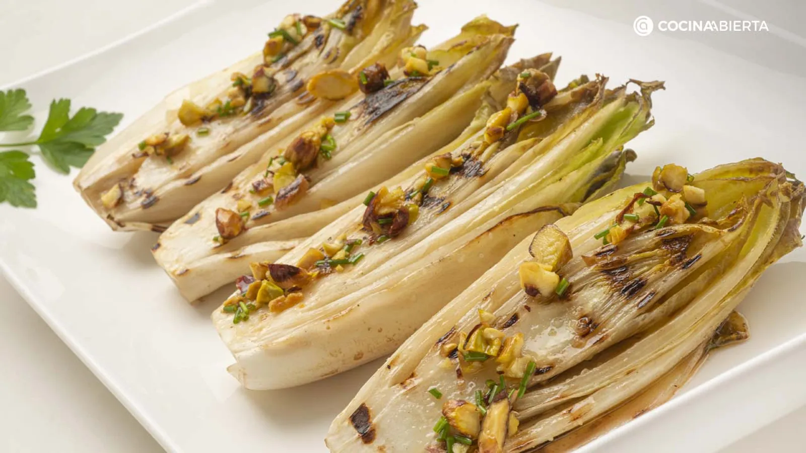 Cómo hacer endivias a la plancha con vinagreta de pistachos