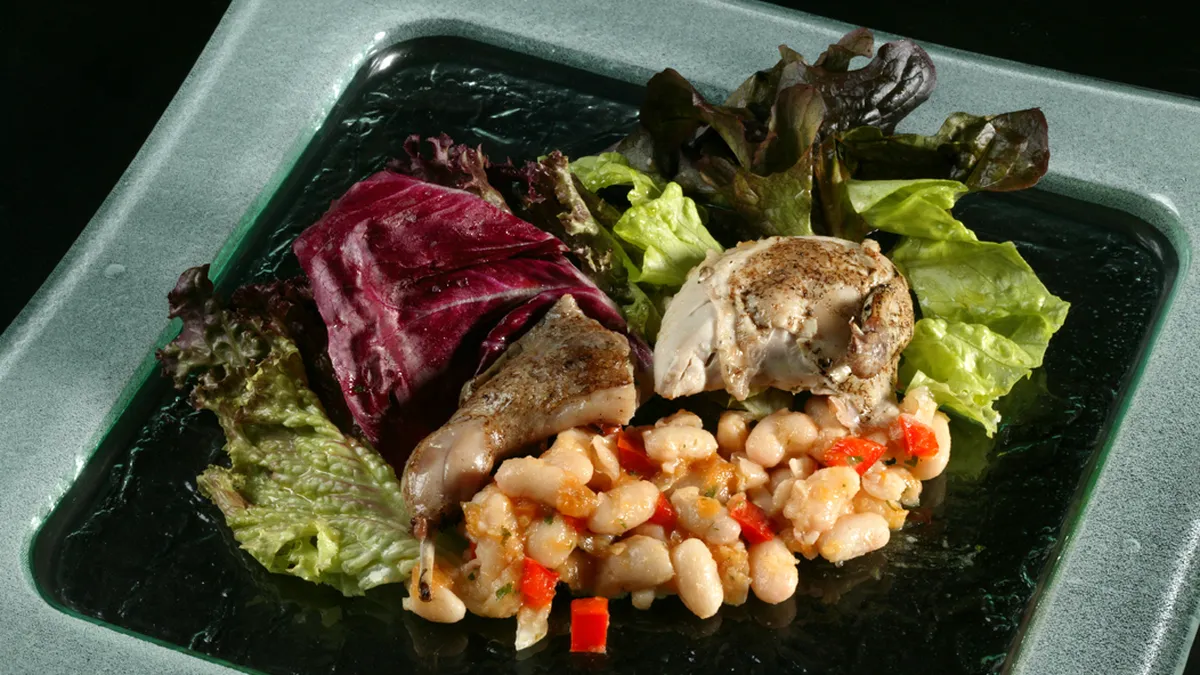 Ensalada de alubia blanca y codorniz
