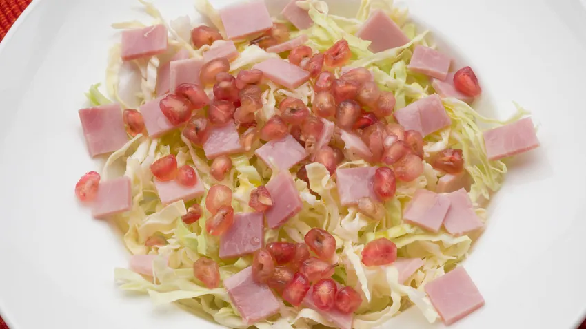 Elaboración de la Ensalada de berza, jamón cocido y granada: