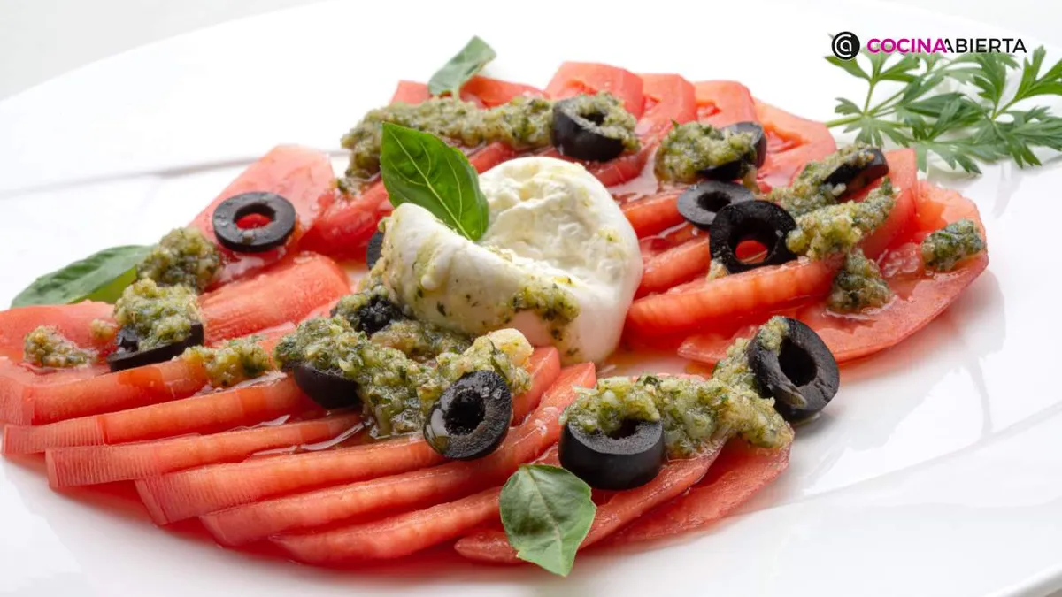 Con qué acompañar la ensalada de tomate con burratina y pesto
