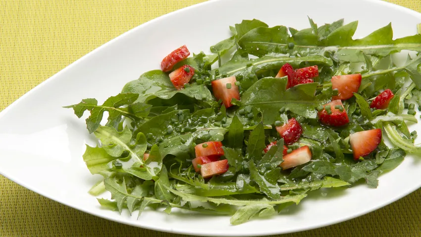 Karlos Arguiñano prepara una ensalada con hojas de diente de león, fresas y cebollino con aliño de limón.